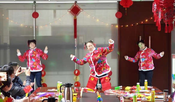 工会、团支部先分别汇报了2023年工作开展情况和2024年工作计划。随后,在自由欢快的舞蹈《科目三》中,团拜会拉开了序幕,跳出了青春与活力,情歌对唱《全是爱》唱出了真挚与热忱,诗歌朗诵《所谓成长》讲述了成长的记忆,独唱《有生之年》唱出了美好的祝愿,合唱《你曾是少年》唱出了青春记忆,舞蹈《桃花朵朵开》将团拜会推向了高潮。