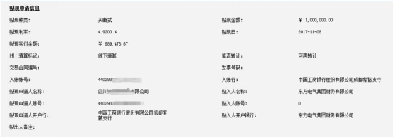 贴现人(贴现人)资金账号:客户在银行网银中选择用于接收贴现资金的入账账号, 财务公司贴现后将资金划入到该账号中。